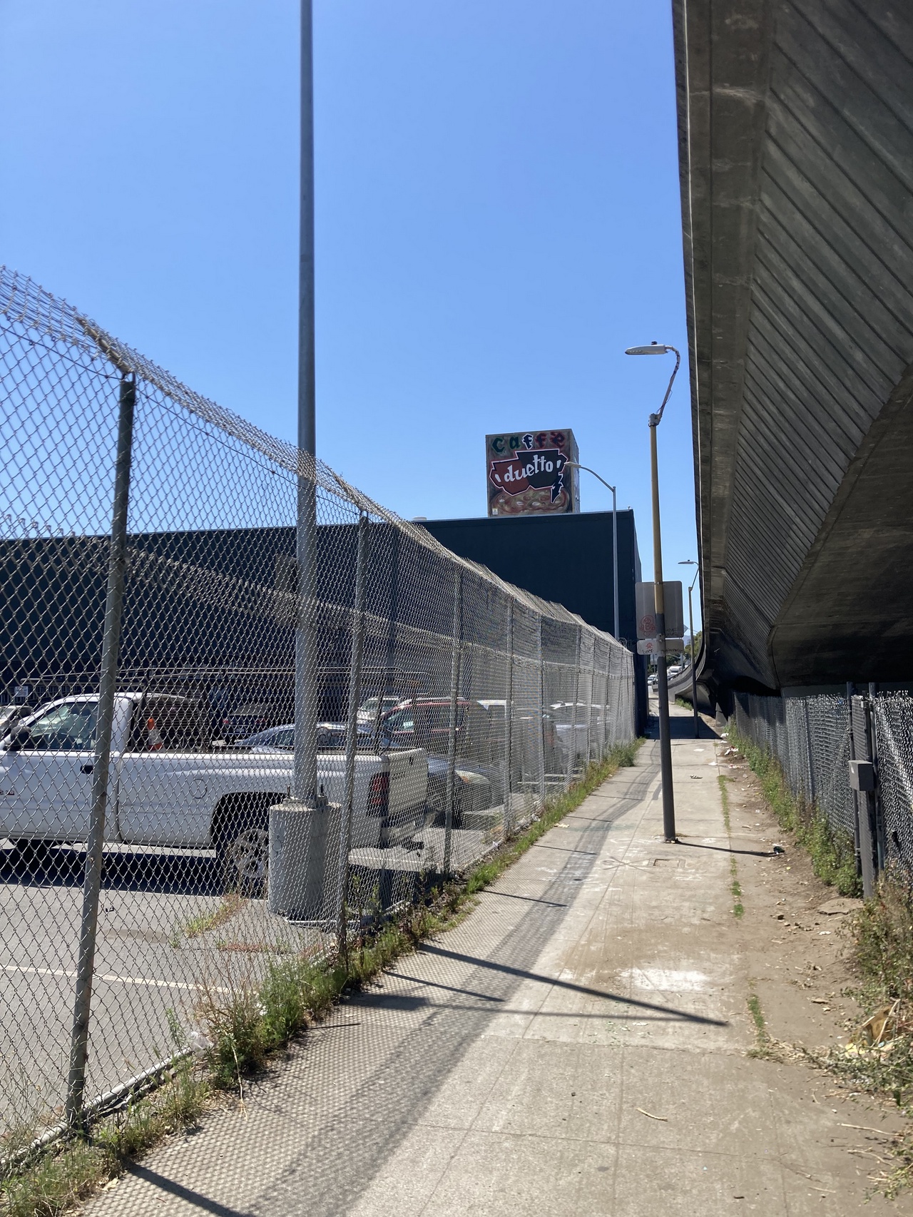I often have reason to go to this stretch of Bayshore Blvd; the recycling center is here, there’s an antique store and an antique diner/bar, and it’s the first leg of a trip to my favorite coffee shop in Bernal Heights. Plus, sometimes I just forget to get off the 9. But once I’m here, I find myself stuck in a way I rarely am. Distance-wise, I know it’s not far from the SF General area, where I live. When I take the 9 it’s less than a five-minute trip. Usually, if I am stranded without a bus I just start walking, but when I’m stuck on Bayshore I’m truly stuck.